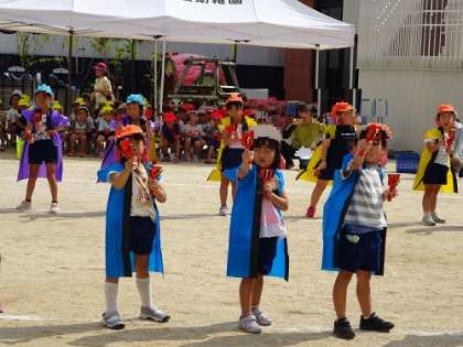 運動会 予行 公開日 2023/09/28 更新日 2023/09/28 お知らせ 5歳児のリズムの後の、全員で披露する鳴子です。 気持ち一つにとてもかっこいい姿です。 後ろの3歳児・4歳児も「ソイヤ!」と声をそろえて応援していました。 いいね(0)