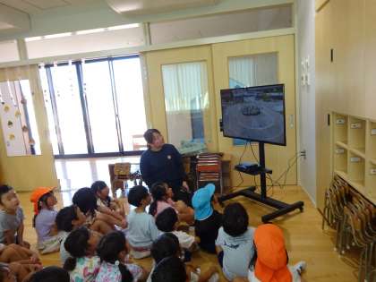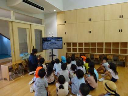 5歳児だけで頑張っているパラバルーンの動画を撮り、映像をみんなで見ました。