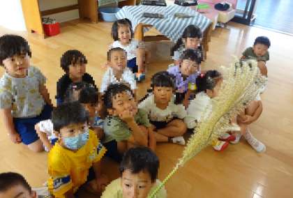 「今日は何がきれいに見える日でしょうか?」と質問すると、「お月様!」と教えてくれました。「まんまるに見えるかな?」「お団子食べる日!」など4歳児なりにお月見を感じています。お月見の絵本を読んだり、お供え物を見たりして、お月見に関心を高めています。今日の夜、お月様を見ることを楽しみしているほし組です。どんなお月様が見えたかな?