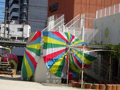 運動会前からずっと使っていたパラバルーンを一度綺麗にしていました。