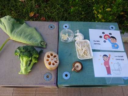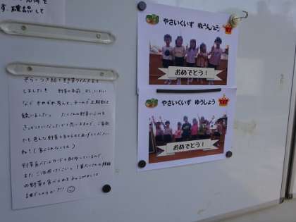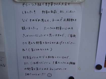 野菜クイズ 公開日 2023/10/12 更新日 2023/10/12 お知らせ 毎月、体重測定をして、その後保健指導を養護教諭がしています。 今月は、野菜クイズでした。 手ざわりの感触、においでクイズです。 この写真は、終わった後の保護者へのお知らせです。 写真は優勝者!! さすが年長組です。 いいね(0)