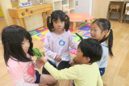 ほうれん草と小松菜の見分けクイズは難問でしたが、「においでわかるねん!」「葉っぱの形でわかる」という子もいましたよ。