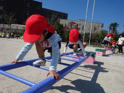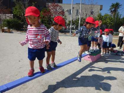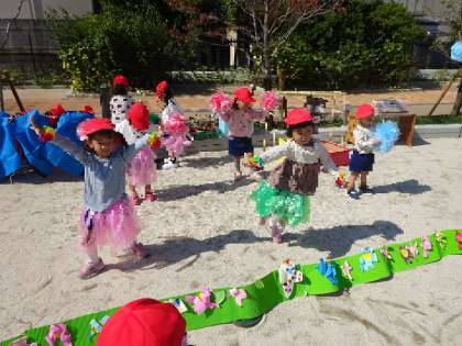 戸外遊び 公開日 2023/10/16 更新日 2023/10/16 お知らせ 戸外では楽しい道ができていました。 一本橋を「そ〜っとそ〜っと」と慎重に渡ったり、梯子は手も足も使ったりしながら、一生懸命道を進んでいました。 進んだ先には草がいっぱいのお山(総合遊具)が。「ゴール!!」と嬉しそうに登っていましたよ。 ダンスコーナーでは、いろいろな衣装を身に着け、年長児や年中児が運動会でしていたダンスを楽しんでいました。運動会の余韻を感じながら、異年齢での交流も大切にしています。 いいね(0)