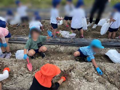 畑の土は思ったより固かったようで、苦戦している子もいました。