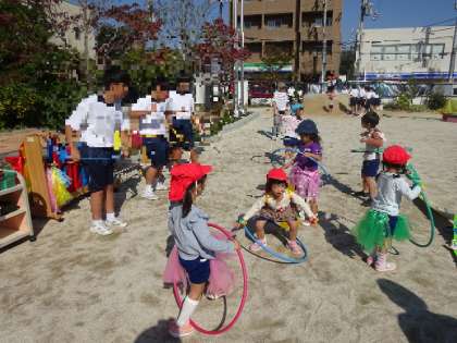 園庭での好きな遊びを一緒にしました。