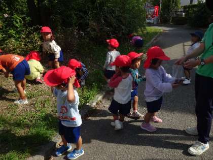いちご組さんも秋を探しに行ってみよう!ということで、伝法校外グラウンドの横にある公園へお散歩へ行ってきました。