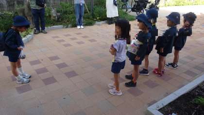 登園してくる子どもたちも、立ち止まり、挨拶してくれる子どもたちも増えてきました。
