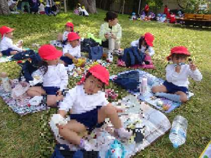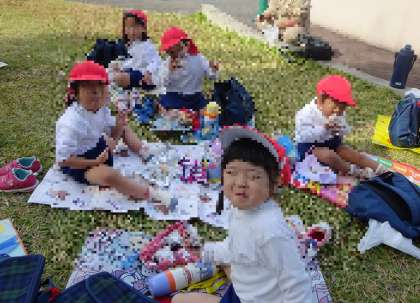 「動物可愛かったね!」「ライオン寝てたね〜」など、見たことを伝え合いながらおにぎりを楽しそうに食べていました。