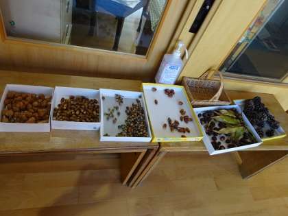 秋を感じることができるように様々な仕掛けが幼稚園にあります。