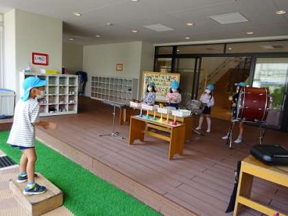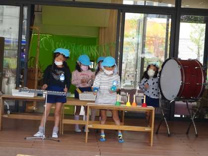 楽器や指揮者を交代しながら、自由の遊びを楽しんでいます。