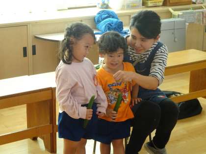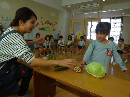 野菜の持っているパワー(病気になりにくくする、いいうんちを出す)も知り、野菜を食べてみたい!という気持ちが高まったいちご組さんです。