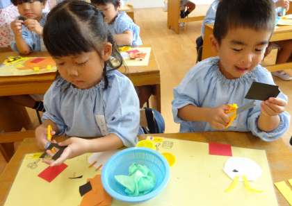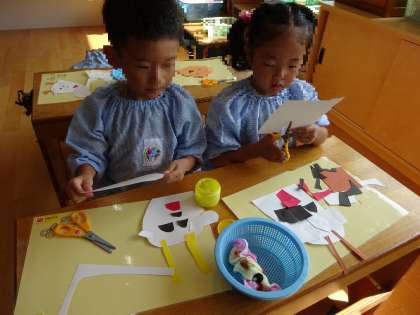 実際に見ていろいろなことを感じていたのか、「つのが大きかったから3番目のがらがらどんをつくろうかな?」「小さいがらがらどんにする」などイメージを膨らませて思い思いのがらがらどんをつくっていましたよ♪