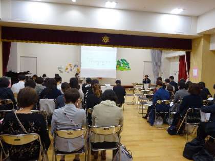保育の後は、田尻町立認定こども園の先生より研究提案のお話をお聞きし、勉強させていただきました。