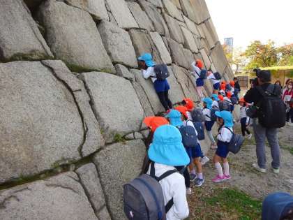 駅から上がると「見えた」「お城」「あそこに登るんやんなあ」