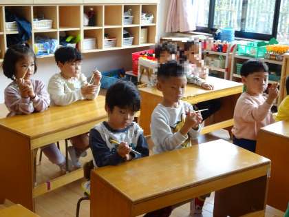 「歯みがき名人になったから、次はお箸名人だね!」との声があり、いろんな名人になりたいと意欲をもっている子どもたちです。