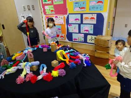 かざりつけや展示も自分たちで行うことで、「自分たちで作品展をつくりあげる」「お家の方を招待したい」という気持ちをもてるようにしていきたいです。
