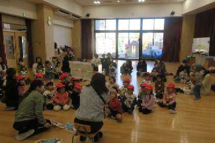 お部屋遊びやお外遊びを楽しんだ後、みんなでお返事遊びをしました。