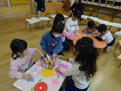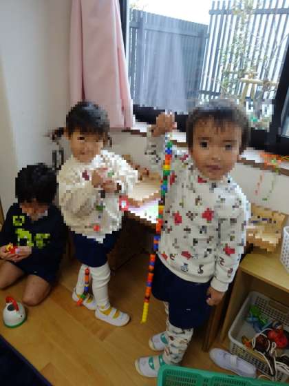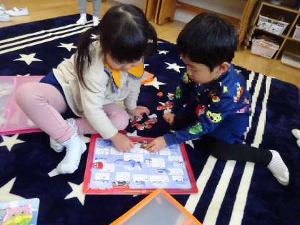 好きな遊び(3歳児) 公開日 2024/01/10 更新日 2024/01/10 お知らせ 今日から好きな遊びをすることを楽しみに登園してきていたいちご組さん。 お部屋のおもちゃも冬の遊びに変わっていて、友達と顔を突き合わせてパズルをしたり、紐通しやおえかきを楽しんだりしていました。 またコマ回しやカード遊び、積み木など、冬ならではの遊びも楽しんでいきたいと思います。 いいね(0)