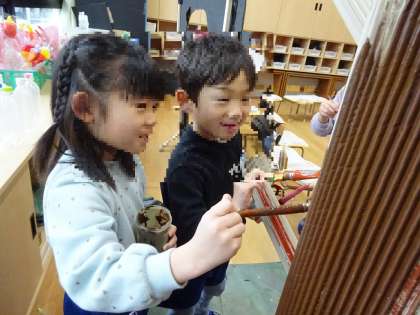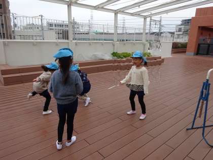 ウッドデッキでは羽子板をして遊んでいました。羽の先の黒い玉は、「無患子」であるということを、昨日始業式で園長先生から教えていただきました。「子どもが患うことがないように」という願いが込められています。今年も元気いっぱいたくさん遊べますように!