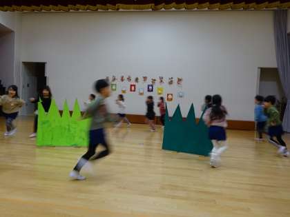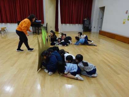 草を劇に使うかどうかは分かりませんが、草の裏で隠れている子どもたちはこのような感じです…。かわいいですね!