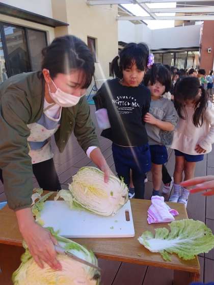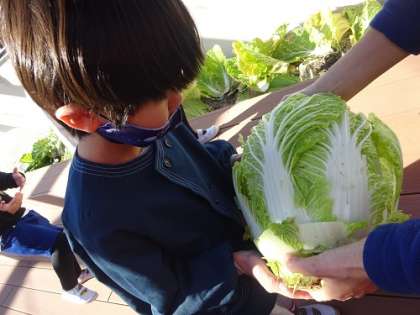 白菜の収穫2 公開日 2024/01/11 更新日 2024/01/11 お知らせ ずっしり重い白菜を持ったり、半分に切った断面を見たり、水やりして育てたものを収穫する喜びを味わいました。 みんなで少しずつもって帰っています。 お家の方と相談してお料理して、食べることを楽しんでください! 「野菜カード」が楽しみです! 幼稚園では食育にも取り組んでいます! いいね(0)