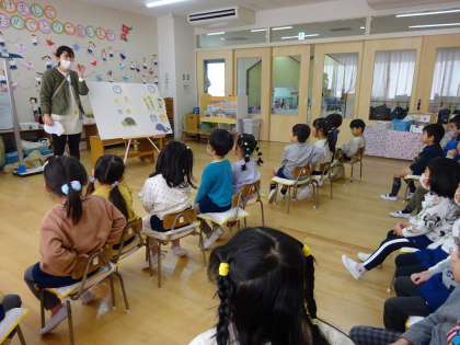 今日はほし組で早寝・早起き・無遅刻の「くじら列車」のお話をしました。