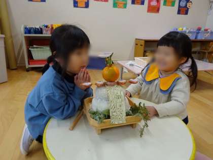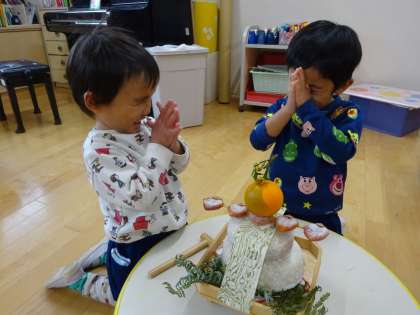 鏡開き(3歳児) 公開日 2024/01/11 更新日 2024/01/11 お知らせ 3歳児も鏡開きをしました。 1年の無病息災を願うのですが、3歳児なりに「元気でいっぱい遊べますように」「毎日幼稚園に元気に来れますように」と心の中で願いながらしていました。 いいね(0)