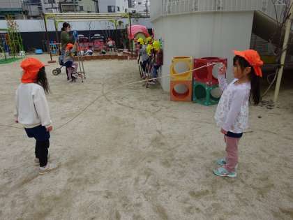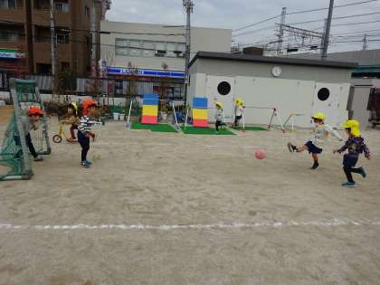 異年齢で関わりながらサッカーをしたり、友達同士で大繩にチャレンジしたりして楽しんでいます。