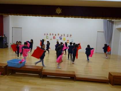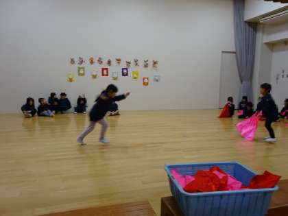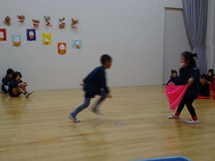 5歳児(そら組) 公開日 2024/01/15 更新日 2024/01/15 お知らせ 闘牛士と牛の闘いです。 牛の目線、勢い、闘牛士の布の使い方など、これまでと取り組んできたことが表現されています。 役などはまだ決めず、全員で遊び、少しずつ構成を考えていきます。 いいね(0)
