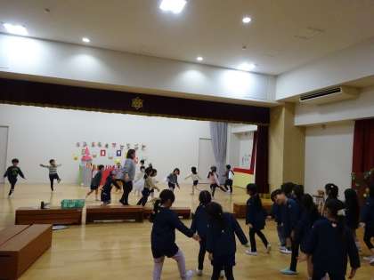 子どもの思いをしっかり引き出し、普段の遊びや生活をのびのびと表現として出せるように進めています。