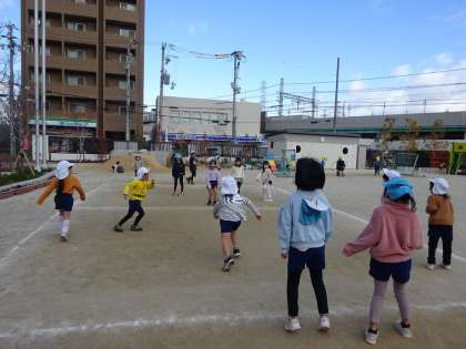 ドッジボール(5歳児) 公開日 2024/01/16 更新日 2024/01/16 お知らせ 寒い日もドッジボールを楽しんでいます。 ドッジボールの仲間がだんだん増えてきて、盛り上がってきています。 2学期に比べると、言い合い、もめごとが少し減っているようでもあります。 ルールがある遊びの面白さを感じることで、ルールを守る大切さ学んでいます。 いいね(0)