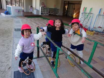 ローリングペダル(車輪のみの遊具)で遊んでいます。