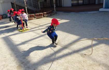 まだまだ跳ぶのは難しいですが、遊びながら(両足をそろえて)跳ぶという感覚がわかるようになったらいいなと思います。