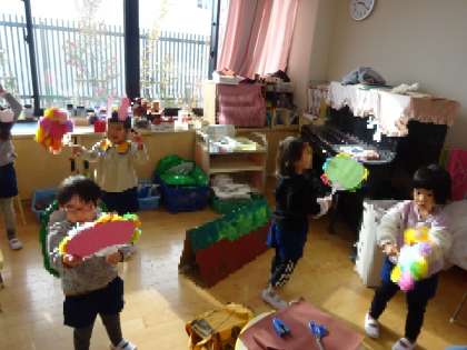 お部屋では劇遊びに出てくるいろいろな動物になってダンスを楽しんでいます。