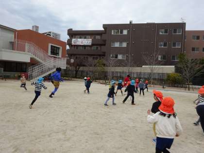 園庭で存分に走って楽しみながら、日本の伝統行事に親しみました。