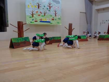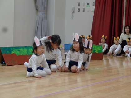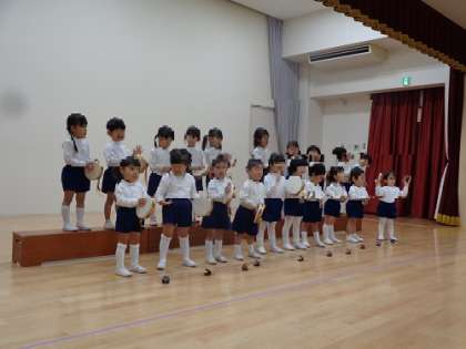 生活発表会1日目 3歳児(いちご組) 公開日 2024/02/08 更新日 2024/02/08 お知らせ 3歳児は、歌と楽器遊びからスタートしました。 最初は緊張して入場してきたようですが、舞台に上がったら、いつもと同じ様子で、元気で楽しく歌を歌い、楽器遊びをしていました。 劇も、いつもの楽しんでいる様子を見ていただけたと思います。 3歳児なりに緊張し、ドキドキもしたかと思いますが、この舞台でいつもの姿を表現できる強さを見せてくれました! いいね(0)