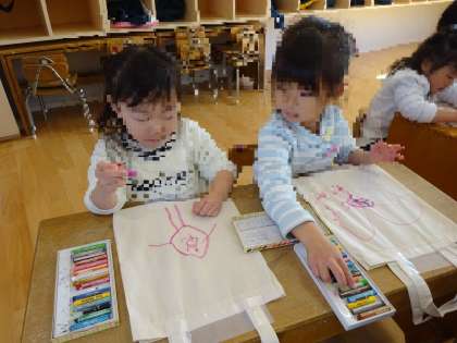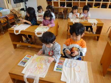 自分だけのカバン(コットンバック)に絵をかいたよ(3歳児)