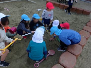 ペア活動をしたこともあり、園庭では年中少が入り混じって遊んでいました。