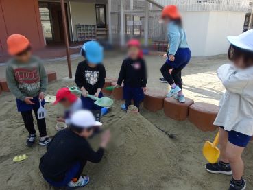 「入れて〜」という小さい組にも「いいよ〜」と優しく言ってくれて、みんなで大きなお山をつくっていました!
