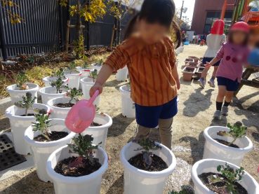 「もっと大きくな〜れ」と願っていた子どもたちでした。