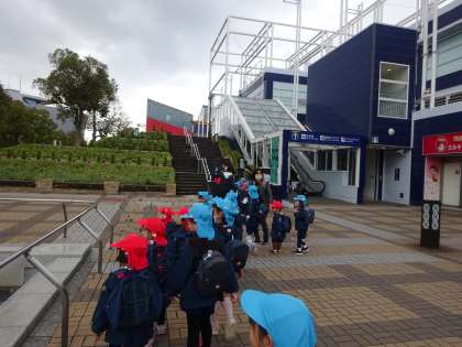 そらぐみ、いちごぐみとペアになって行きました。駅の階段ではそらぐみさんがいちごぐみさんに手すり側を歩かせてあげたり、「手つなごう。」「電車のるよ。」とペアのおともだちに話しかけている姿が優しく、頼もしく感じました。