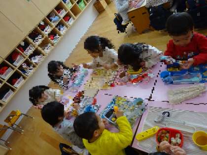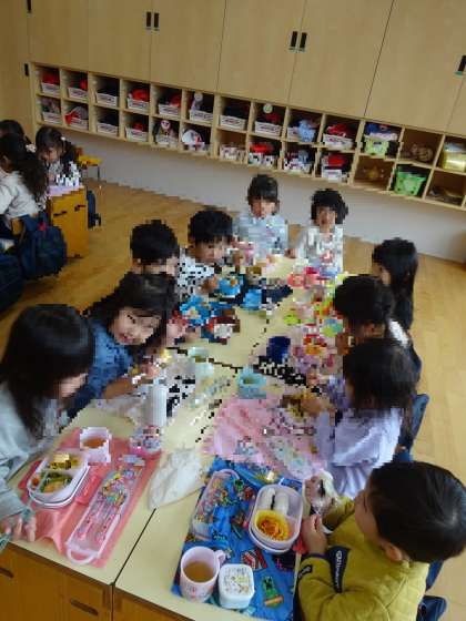 最近はもっとクラスのいろいろなお友達とも楽しくお弁当が食べられるように、、、と、座る席を自分で選んだり、くじ引きで隣り合う子を決めたり、仲良し遊びをして決めたり、と日替わりで座るところを決めています。