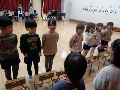 歌を歌っています。 向かい合って歌うことができ、とっても温かい気持ちになりました。