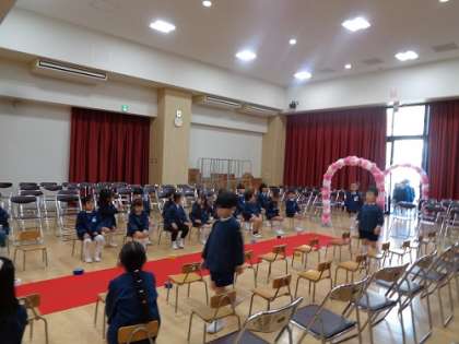 姿勢を正し、前の友達との距離をとり、とっても立派に入場してきます。