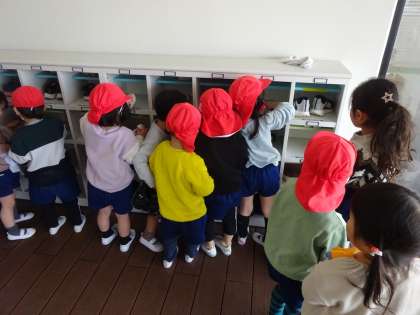 遊んだ後は、「ピカピカの幼稚園でお祝いができるように」と、小さい組さんなりに、雑巾をもってお掃除をしてくれました。