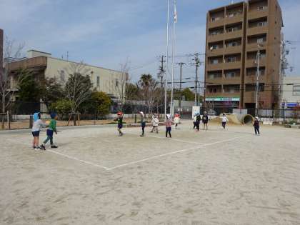 春探しをしたり、一輪車に挑戦したり、クラスも学年も交じりあってドッジボールをしたり・・・!