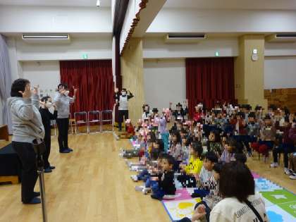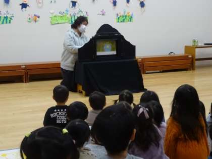 今日はこのはな図書館の絵本の会の方がこどもたちに絵本や、紙芝居を読んでくださいました。春を感じられる「たんぽぽのおかあさん」のお話や、ダジャレをまじえた「まほうのれいぞうこ」、大型絵本など様々なジャンルのお話を聞かせてくださり、子どもたちも真剣に聞いたり、笑ったり、楽しい時間でした。
