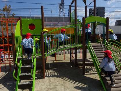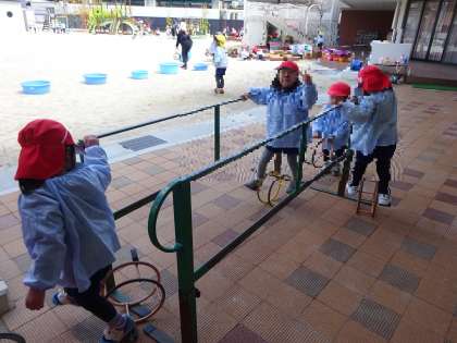 自分の好きな遊びを見つけて、いろいろな遊具に挑戦したり、ツマグロヒョウモンの幼虫を観察したり、総合遊具で遊んだり、思い思いに楽しんでいました。