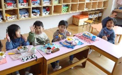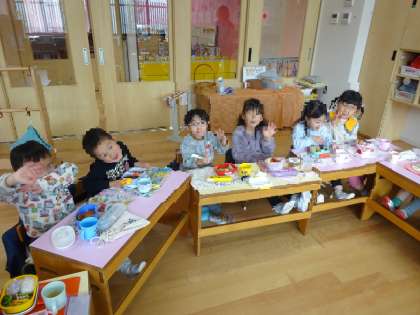 今日はいちご組の保育室でみんなで食べる最後のお弁当の日でした。