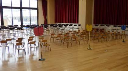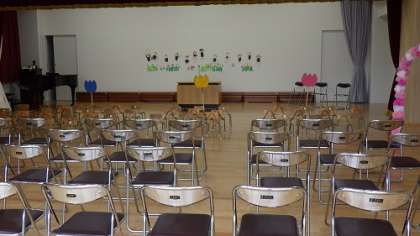 遊戯室の清掃も終わり、そら組・ほし組・ゆき組の席も準備され、あとは子どもたちの登園を待つばかりです。